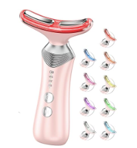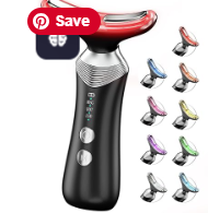 9-in-1 Red-Light-Therapy-for-Face-and-Neck, Portable Facial Massager Tool with Adjustable Vibration & Thermals for Wrinkles, Double Chin, Black